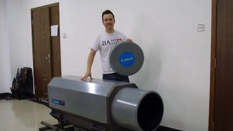 Canon 5200mm f/14 jest określany, jako największy i najsilniejszy obiektyw stałoogniskowy stworzony dla lustrzanek. Być może, ale na pewno nie jest najcięższy. Jego 100 kg ma się nijak do 250 kg dużo nowszego Zeissa Apo Sonnar T* 1700 mm. Wymiary przedziwnego teleobiektywu to 190 cm (długość) x 50 x 60 cm (szerokość). Minimalna odległość ostrzenia wynosi 120 metrów, a 30km do 52km to obszar, z którego ta bestia potrafi ?ściągnąć? fotografowany obiekt. Super teleobiektyw japońskiego producenta powiększy obiekt 100 razy bardziej, niż klasyczny obiektyw 50mm. Po podłączeniu do lustrzanki Canona z matrycą APS-C (np. Canon 500D, 50D) osiągniemy ogniskową aż 8320mm! Podobno wyprodukowano tylko 3 sztuki giganta.