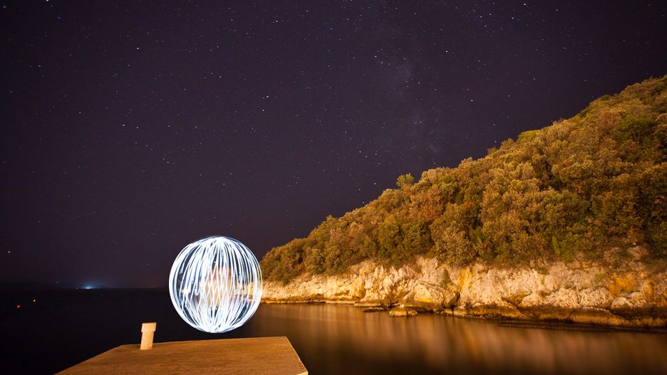 Malowanie światłem to naprawdę niezła frajda. Gdy byłem ostatnio w Chorwacji, postanowiłem przygotować dla Was jeszcze jeden poradnik, w którym pokazuję, jak malować świetlne kule. Rzuciłem się na głęboką wodę, bo oprócz Canonów 5D i EOS-M nie wziąłem ze sobą żadnych specjalnych akcesoriów. Miałem tylko to, co znalazłem w bagażniku, mianowicie - prostą latarkę LED i sznurek. Udało mi się połączyć to w całość (wkręciłem sznurek w gwint latarki) i podstawowy zestaw uznałem za gotowy.