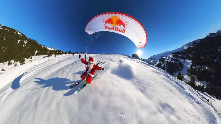 W roli świętego Mikołaja wystąpił profesjonalny miłośnik sportów ekstremalnych Valentin Delluc, który wziął udział w genialnej akcji marketingowej Insta360. Nie chodzi tylko o nagranie filmu z przelotu nad stokiem w charakterystycznym stroju, ale również o prezenty.