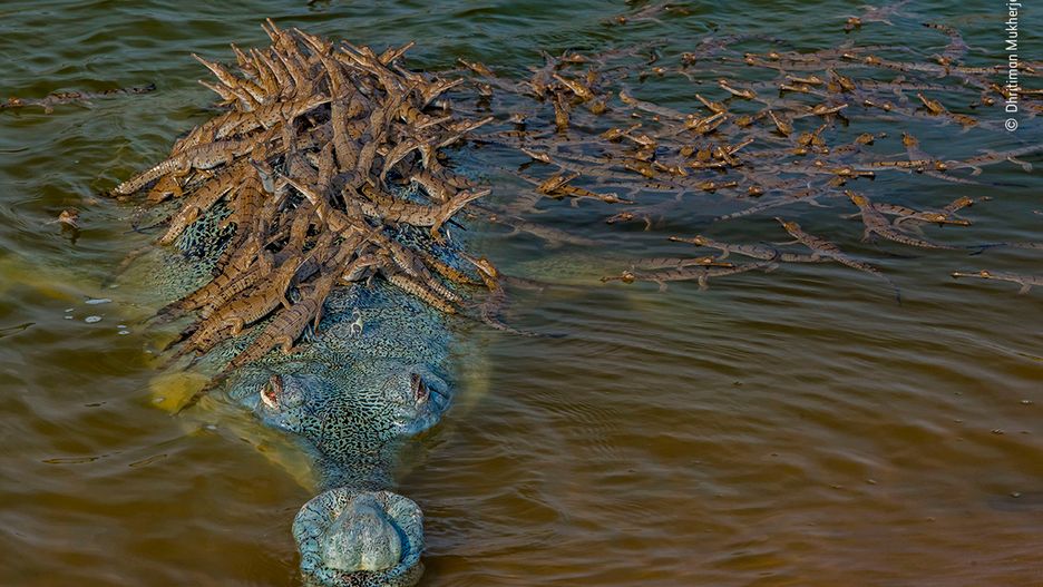 Dhritiman Mukherjee jest fotografem dzikiej przyrody, który obrał sobie za cel polowanie na nigdy wcześniej niewidziane zdjęcia zagrożonych dzikich zwierząt. W trakcie wizyty w rezerwacie w Indiach natknął się na niezwykły widok gawiala, indyjskiego krokodyla, pilnującego dużej chmary swoich młodych.