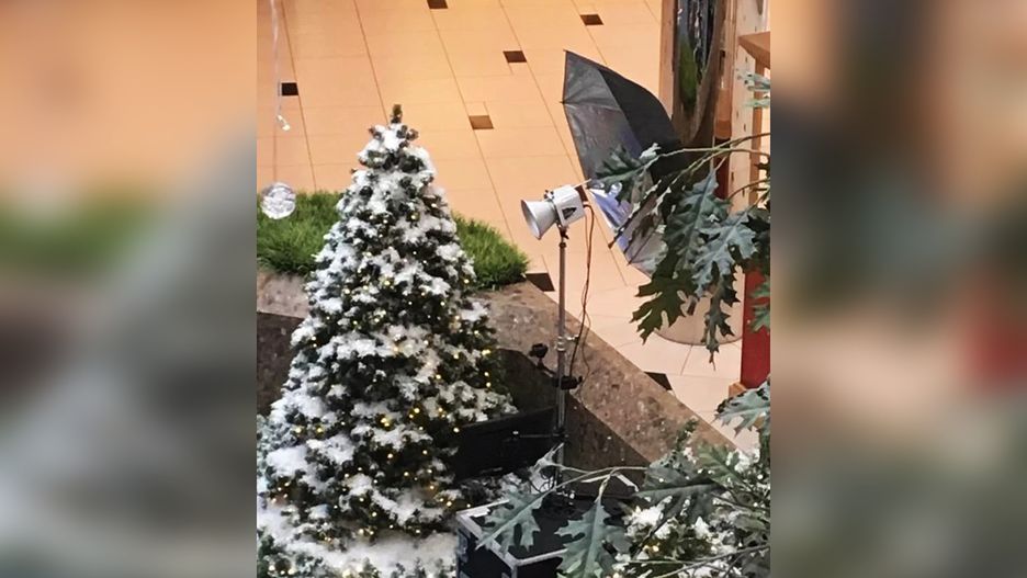 Fotografka Holly Romaya przechadzała się przez centrum handlowe w Detroit i zobaczyła to. Lampę błyskową z parasolką odbijającą. Wszystko byłoby spoko, gdyby nie fakt, ze lampa była skierowana w zupełnie przeciwnym kierunku, niż powinna! Ta mała głowica AlienBee powinna celować dokładnie w środek srebrnego materiały, by odbić światło.