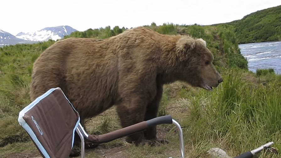 Drew zachował zimną krew i nie wykonując żadnych gwałtownych ruchów, sfilmował siedzącego z nim niedźwiedzia brunatnego. Pomimo tego, że na filmie niedźwiedź bardziej przypomina uroczego misia, należy pamiętać, że to bardzo niebezpieczne zwierze. Trzeba przyznać, że ten fotograf ma nerwy ze stali.