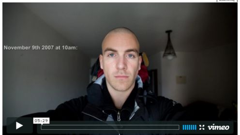 Christoph Rehage wykorzystał motyw fotografowania się w trakcie swojej podróży w różnych miejsca i o różnej porze, ale w podobnym ustawieniu. Później zmontował te fotografie w jeden film. Widzimy, jak bohater zmieniał się przez rok swojego marszu - urosły mu włosy, broda, przybrał na wadze. Oto efekt: