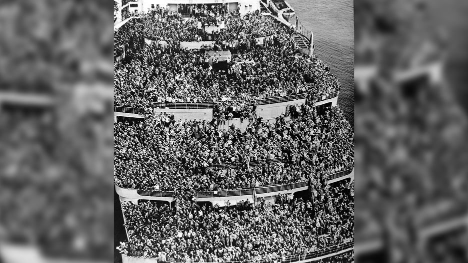 Wraz z zakończeniem II wojny światowej tysiące Amerykanów wyruszyło w podróż powrotną do domu. Szczególną uwagę zwraca zrobione w tym okresie zdjęcie brytyjskiego liniowca RMS "Queen Elizabeth”, wypełnionego po brzegi żołnierzami.