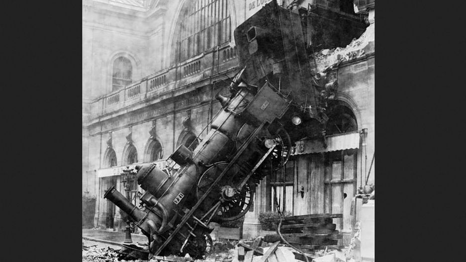Uchwycona w kadrze katastrofa kolejowa jest znana jako "Niezwykły wypadek na Gare Montparnasse". Zdarzenie miało miejsce 22 października 1895 r. na jednym z dworców w Paryżu. W chwili wypadku w pojeździe składającym się z 12 wagonów przebywało 131 ludzi.