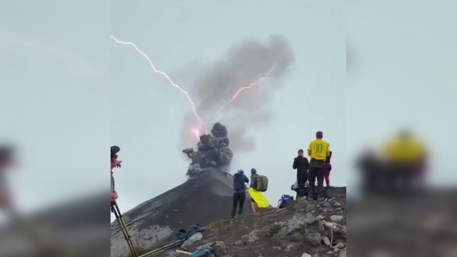 Przewodniczka górska Chino Adventuras uchwyciła na nagraniu to wyjątkowo rzadkie zjawisko w pobliżu szczytu Volcán de Fuego w Gwatemali. Na filmie opublikowanym na profilu Nature Is Metal widać grupę turystów wspinających się na punkt widokowy, z którego można obserwować wulkan. W pewnym momencie z kłębiącego się czarnego dymu nagle wystrzeliło kilka błyskawic wywołujących gromkie okrzyki.