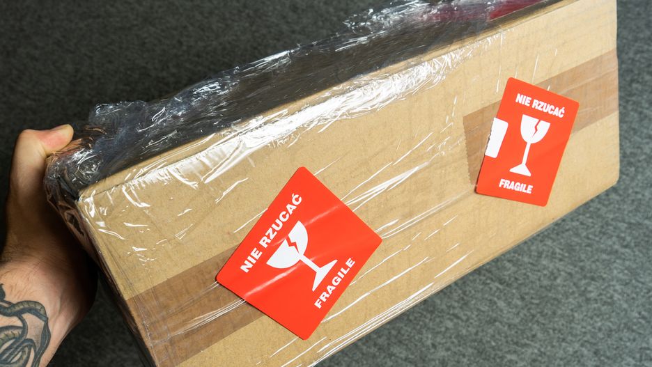 Czerwona naklejka z napisem ”NIE RZUCAĆ” na pewno pomoże na każdym etapie podróży paczki – przy załadunku, sortowaniu oraz dostawie. Przynajmniej w teorii. Pamiętajcie, by na liście przewozowym wypełnić rubrykę z deklarowaną wartością przesyłki, by móc ubiegać się o odszkodowanie w razie uszkodzenia paczki.