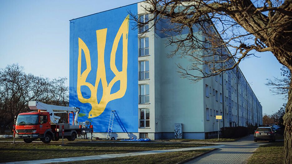 Innym przejawem solidarności z Ukrainą jest mural na całej ścianie budynku przy ulicy Chłopskiej 34. Jego autorem jest Jakub Sobczak. Ogromna grafika jest wariacją artystyczną na temat herbu Ukrainy połączonego z gołębiem, symbolem pokoju. Niebieski i żółty są narodowymi kolorami naszego wschodniego sąsiada.