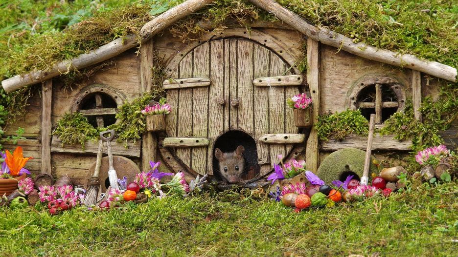 Skoro już zagospodarowały sobie teren, Simon postanowił, że umili im kolonizację ogródka. I tak zrodziło się jego nowe hobby. Artysta zaczął budować malutkie domki w stylu tych, znanych z Hobbita czy Władcy Pierścieni – chodzi o niewielkie chatki pokryte mchem i zbudowane całkowicie z drewna. Oprócz samych domków, Simon zadbał o ich wyposażenie – pojawiły się miniaturowe krzesełka oraz stoły.