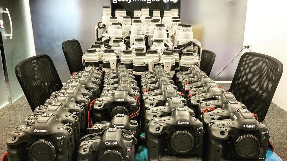 Dyrektor do spraw wydarzeń sportowych Getty Images, Michael Heiman, zrobił zdjęcie sprzętu, którego będą używali pracownicy agencji. Jak mówi – „W planach jest wykonanie około 1,5 miliona klatek, a kluczową sprawą jest to, by zdjęcie dotarło do klienta w przeciągu 120 sekund od jego zrobienia”.