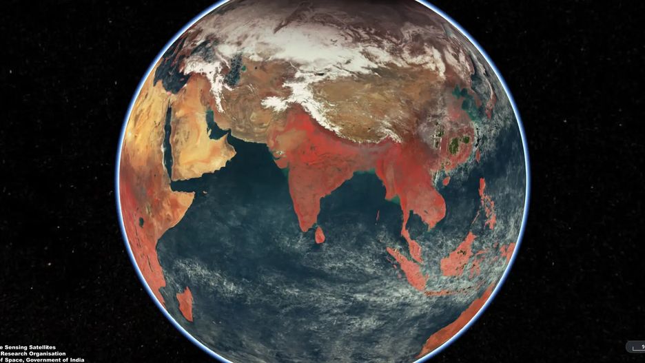 Indyjski satelita EOS-06 wystrzelony na orbitę w listopadzie 2022 roku, służy do zbierania danych dotyczących koloru oceanu, temperatury powierzchni morza i danych wektorowych wiatru. Informacje te zbierane są dla celów oceanograficznych, klimatycznych i meteorologicznych. Jest to satelita trzeciej generacji z serii indyjskich Oceansatów. Zaprezentowane zdjęcia zostały skomponowane z mozaiki zdjęć w fałszywych kolorach, tak odmiennych od "niebieskiego marmuru", czyli obrazu Ziemi znanego z kultowych zdjęć zaprezentowanych przez Apollo 17.