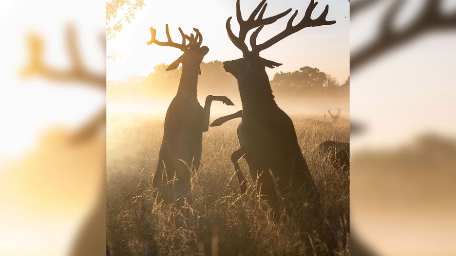 Na serii zdjęcie Maxa Ellisa zobaczymy dwa "tańczące" jelenie. Przepiękna sytuacja została zarejestrowana w londyńskim Richmond Park. To miejsce jest niezwykle wyjątkowe. Leżący nad Tamizą park zajmuje 955 hektarów i jest największym tego typu miejscem w Europie.