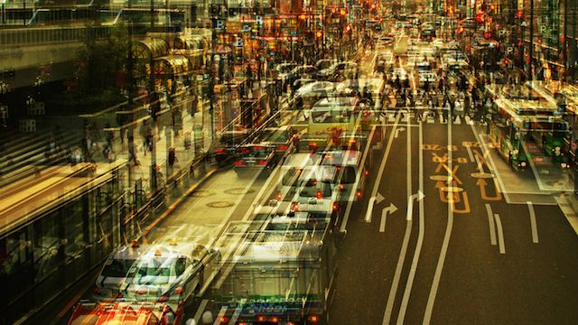 Stephanie Jung stworzyła portrety japońskich miast, które trafnie pokazują poczucie czasu ich mieszkańców. Wielokrotna ekspozycja, którą posłużyła się autorka, podkreśla ekspresję miejskiego krajobrazu. Zdjęcia ukazują, jak czas ucieka między powtarzającymi się liniami ruchu betonowej dżungli.