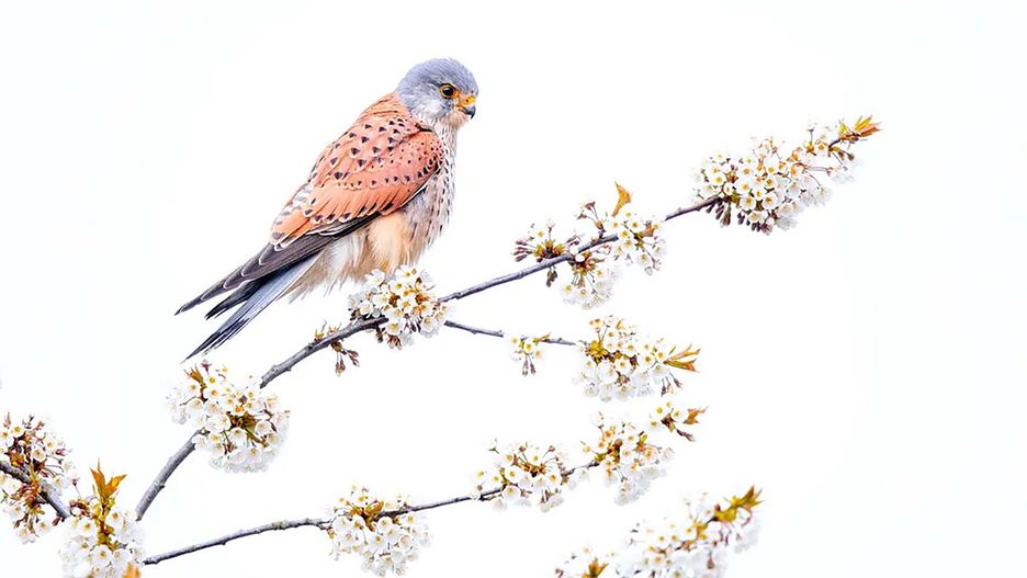 Młody miłośnik fotografii wygrał nie tylko kategorię poświęconą ptakom, ale cały konkurs. Zaprezentował on zdjęcie pustułki zwyczajnej siedzącej na gałęzi kwitnącego drzewa. Gdyby był to buk (wybrany drzewem roku w Niemczech), ten kadr miałby jeszcze silniejsze znaczenie. Jednak sokołowaty ptak pośród białych kwiatów na białym tle wygląda oszałamiająco.