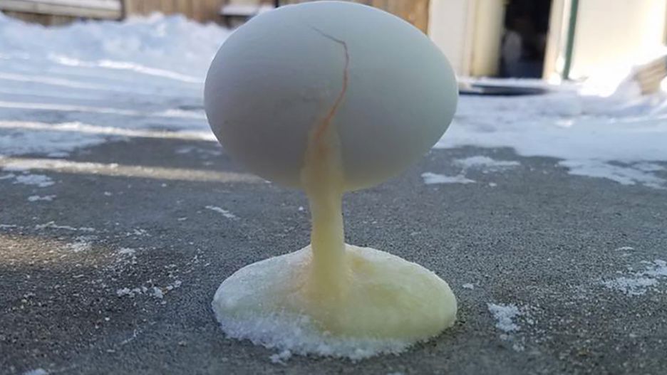 Na kanale Minnesota Cold na YouTube możemy zobaczyć, co zrobić, żeby stworzyć wyjątkowe zdjęcie zamarzniętego kurzego jaja, zawieszonego w powietrzu. Przy odpowiednio niskich temperaturach, wcale nie jest to trudne.