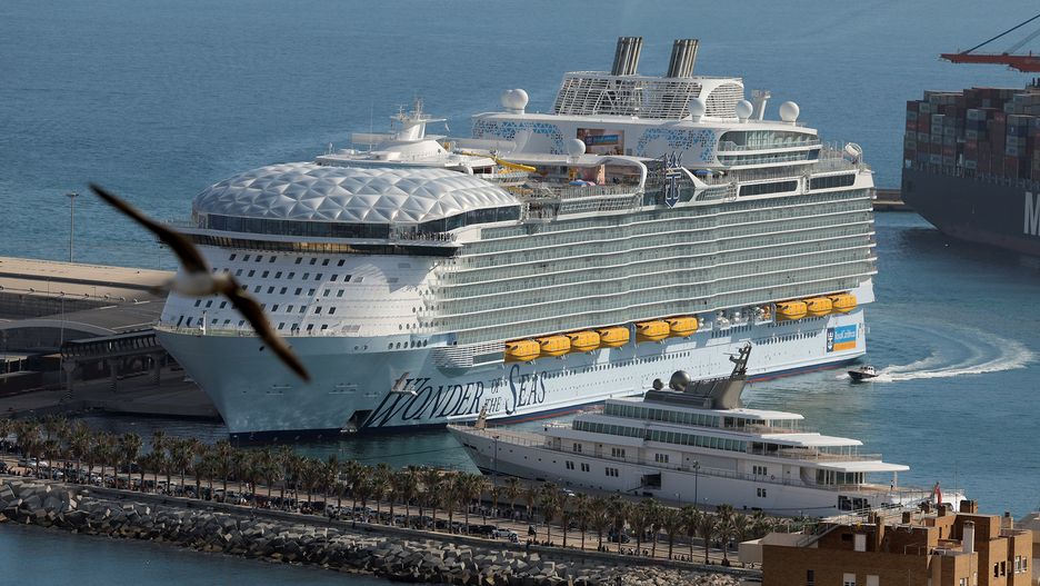 Wycieczkowiec Wonder of the Seas zacumował w malagijskim porcie. Ten ogromny, luksusowy statek robi nieziemskie wrażenie. Patrząc na to, jak wygląda, stojąc przy molo i luksusowym jachcie, można wyobrazić sobie jego rozmiary.