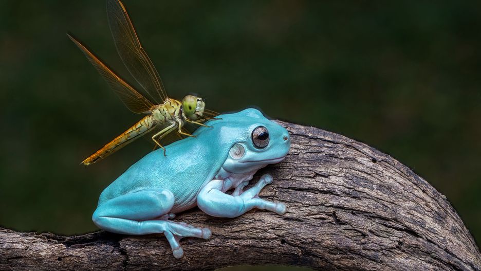 Przed wami genialny kadr indonezyjskiego fotografa. Ujął on chwilę, w której na jaskrawoniebieskiej żabie wylądowała ważka. Mimo tego, że te płazy żywią się owadami, bohaterka zdjęcia po prostu spokojnie siedziała. Coś pięknego!
