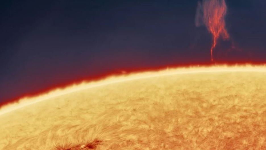 Tym razem McCarthy uchwycił w kadrze chmurę plazmy, która kształtem przypomina drzewo. Na tle Słońca wydaje się być ona zaledwie drobną mgiełką, ale jej rozmiary są naprawdę ogromne – szacunkowo ma ok. 129 tys. km. wysokości. Oznacza to, że jest większa niż średnica Saturna – druga po Jowiszu największa planeta Układu Słonecznego. Aby jeszcze lepiej oddać skalę, wystarczy wspomnieć, że średnica Ziemi liczy ok. 12,7 tys. km.