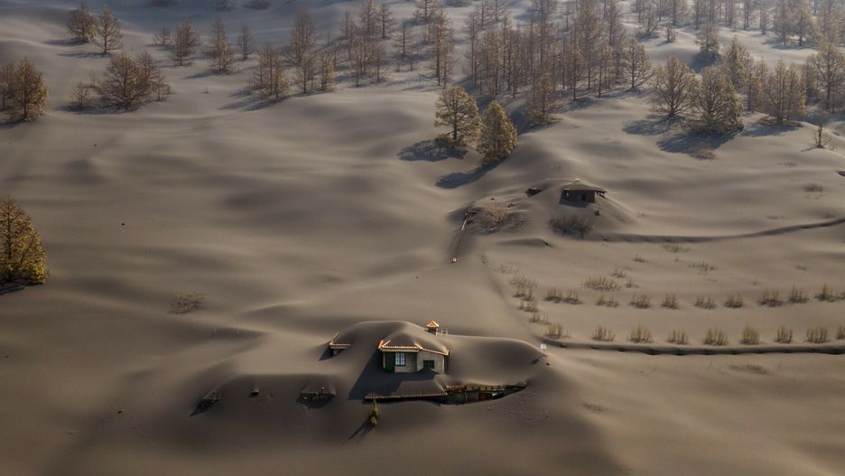 Na zdjęciach autorstwa Emilio Morenattiego – głównego fotografa agencji AP w Hiszpanii i Portugalii – widać domy pokryte zewsząd popiołem powstałym po erupcji wulkanu. Tego dnia Cumbre Vieja wyrzucił ogromne ilości lawy, pyłów i gazów.