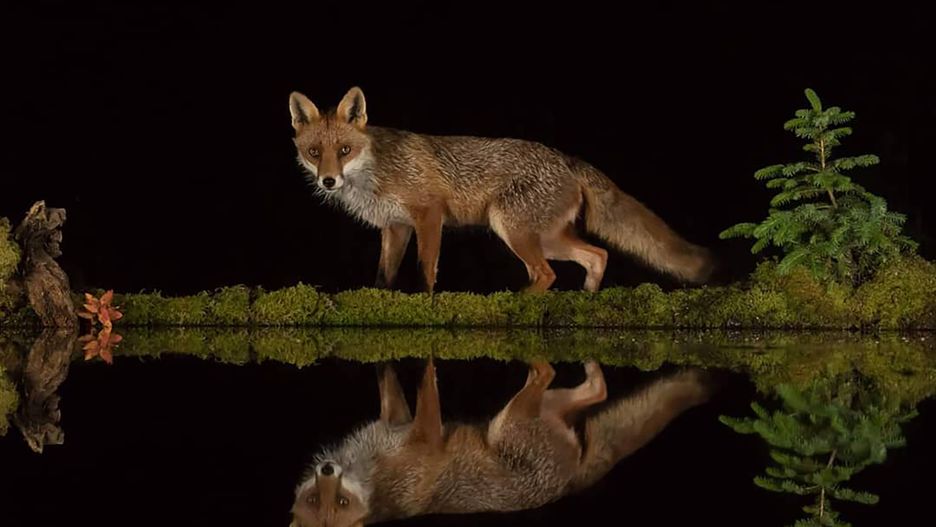 Marzeniem Alana było jednak sfotografowanie dostojnego lisa. Na tego przybysza artysta musiał czekać aż 5 nocy, ale patrząc po zdjęciach, zdecydowanie się nie nudził. Kiedy zrobił wymarzony kadry, czuł się spełniony. Rude stworzenie pięknie komponuje się przy oczku wodnym w czerni nocy.