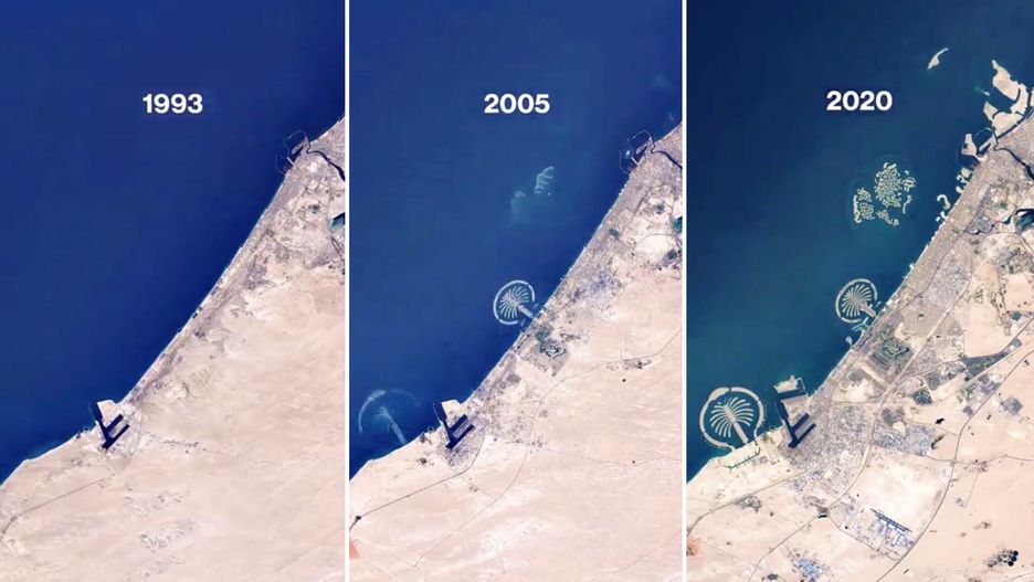 Benjamin Grant zajmuje się tworzeniem satelitarnych filmów poklatkowych, by pokazać jak wielki wpływ ma człowiek na Ziemię. Co za tym idzie – jego produkcje ukazują dosadnie zmiany klimatyczne. Timelapse wybrzeża Zjednoczonych Emiratów Arabskich ze zbliżeniem na Dubaj powstał w oparciu o obrazy z Google Earth, które bazują na zdjęciach satelitarnych programu obserwacyjnego Copernicus, nadzorowanego przez Unię Europejską.