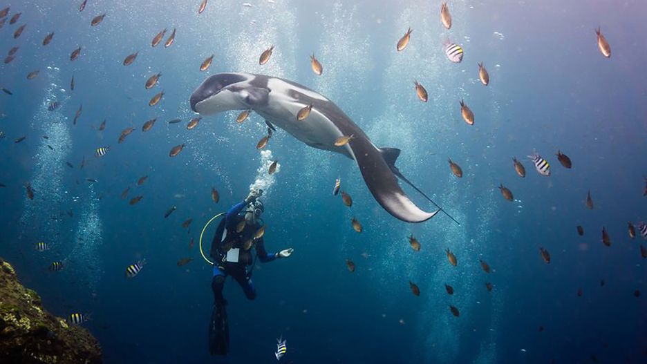 Nagradzany fotograf i nauczyciel nurkowania Daniel Sasse wykonał zdjęcia podczas pływania w pobliżu diabła morskiego. Te zwierzęta żyją w wodach przybrzeżnych w pobliżu raf, w strefie ciepłej Oceanów Spokojnego, Atlantyckiego i Indyjskiego. To największy gatunek płaszczki. Osiąga długość do 5 metrów, a rozpiętość jej płetw może osiągnąć nawet 9 metrów.