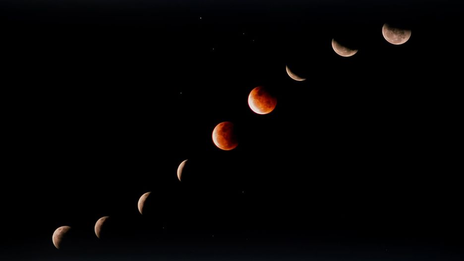 Zapierające dech w piersi zdjęcie sekwencji zaćmienia Księżyca powstało na filmie