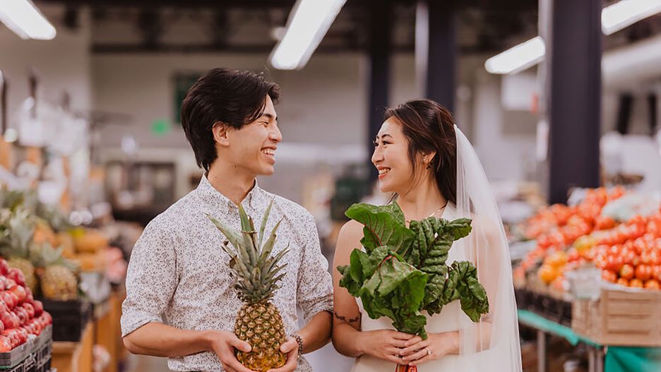 Autorką niecodziennej sesji w sklepie spożywczym jest Anna T. Nguyen. Trzeba przyznać, że nieźle jej to wyszło. Patrząc na te kadry, uśmiech od razu maluje się na twarzy. Jeśli para wykorzystała te zdjęcia, by poinformować znajomych czy rodzinę mailowo lub w mediach społecznościowych o nowym etapie we wspólnym życiu, na pewno nikt tego nie przeoczył.