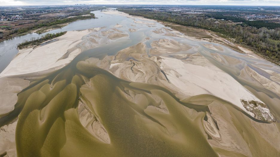 Zdjęcia pokazują odsłaniające się dno Wisły. To najniższy stan wód od lat