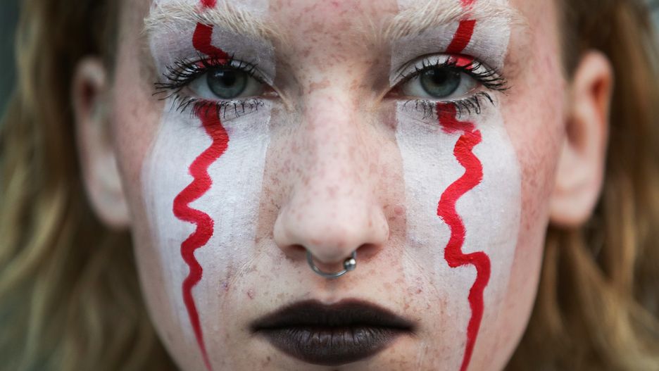 Biało-czerwone barwy na twarzy demonstrantki