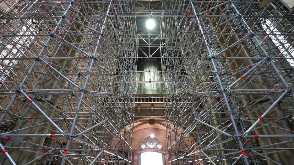 Obecnie trwają prace remontowe. W tym celu ekipa zbudowała gigantyczne rusztowanie, które możecie oglądać na zdjęciach.