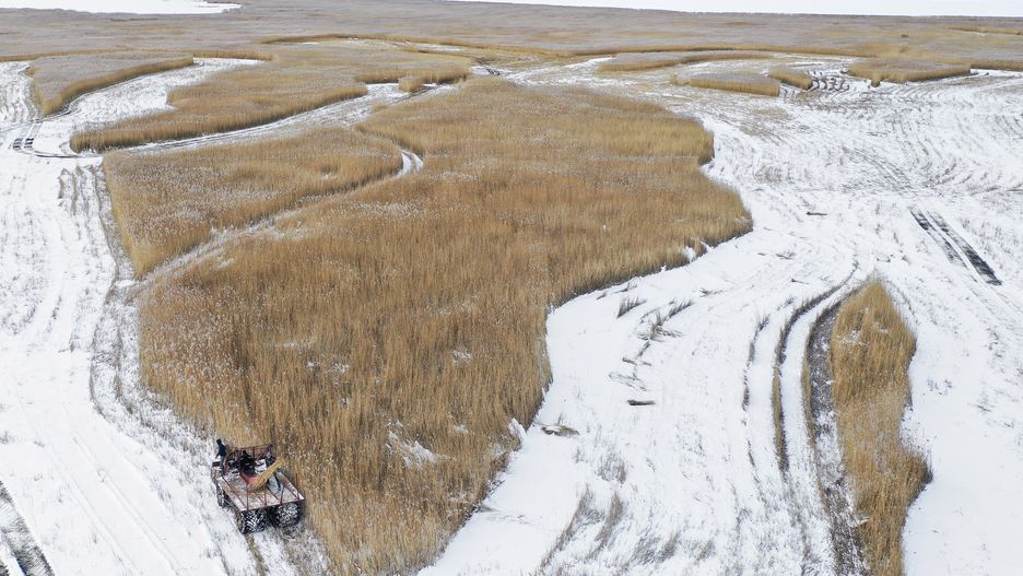 Zdjęcie dnia. Żniwa w środku zimy na zamarzniętym Zalewie Wiślanym
