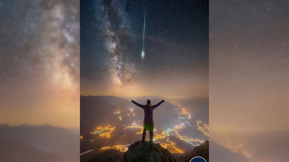 Na zdjęciu z 2018 r. zobaczymy człowieka, stojącego nad urwiskiem i wyciągającego ręce ku niebu. Nad nim zaśgóruje przepięknie widoczna Droga Mleczna oraz "spadająca gwiazda". Kadr powstał podczas deszczu Perseidów, czyli corocznego zjawiska, które występuje na świecie między lipcem, a wrześniem, z apogeum w okolicy połowy pierwszego z wakacyjnych miesięcy.