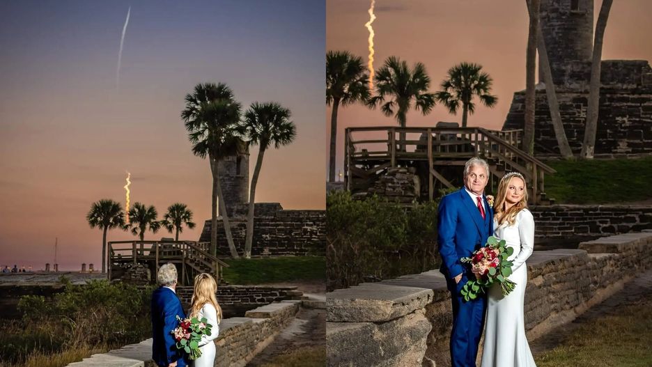 Państwo młodzi z USA będą na pewno długo wspominać dzień swojego ślubu. Tym bardziej że na ich zdjęciach pojawił się dość interesujący gość. Mowa o rakiecie SpaceX, która tamtego dnia została wystrzelona w kosmos. Fotografka ujęła ją na zdjęciu niemal w chwili startu.