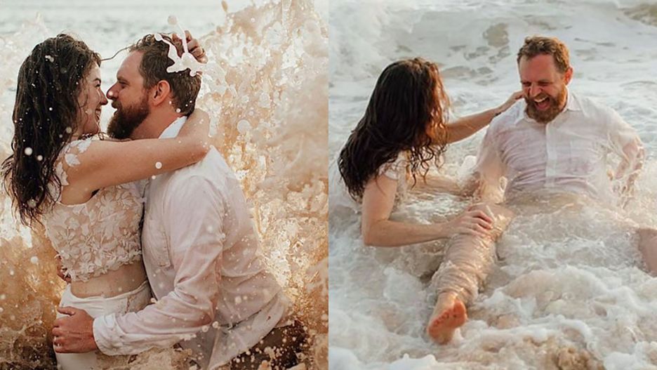 Zmiotła ich fala podczas sesji ślubnej, ale było warto. Zdjęcie jest świetne!