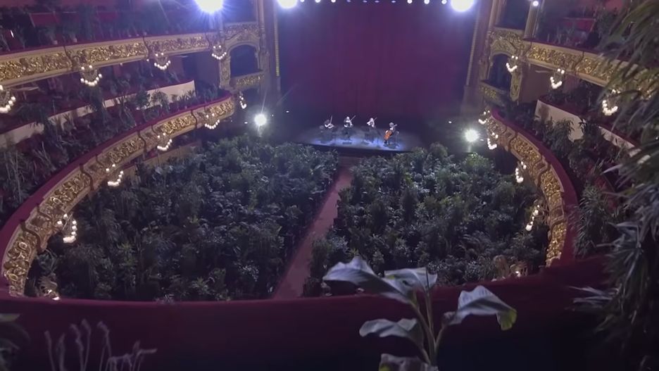 Wyjątkowy koncert został zorganizowany przez artystę konceptualnego Eugenio Ampudię i galerię Maxa Estrelli, którzy znaleźli odpowiednie rośliny i wypełnili nimi miejsca siedzące i balkony 6-poziomowej sali, otwartej w 1847 r. "Słuchaczami" były palmy, draceny, wężownice, figowce, monstery i inne.