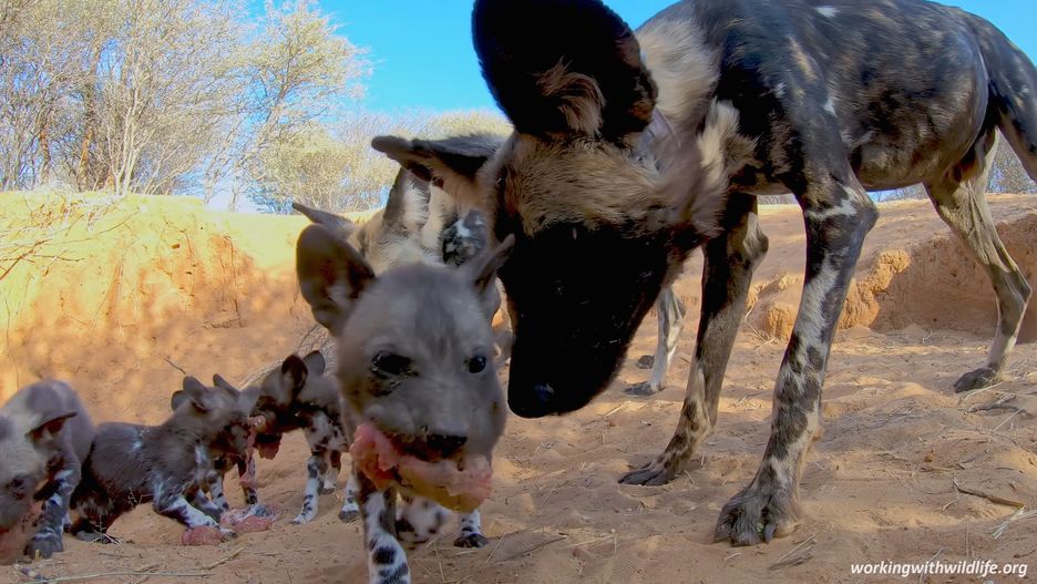 W filmie została pokazana pora karmienia dwóch miotów małych likaonów. Matki sprowadziły je go legowiska, gdzie również przyniosły zdobyte mięso. Szczeniaki od razu wzięły się za jedzenie i dzieliły się nim bez problemu. Wśród tych zwierząt nie widać konkurencji, a rozwinięte umiejętności życia w watasze.