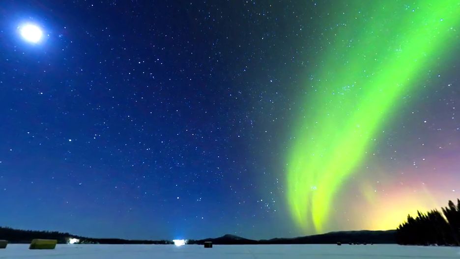Zorza polarna i zaćmienie księżyca na jednym, niesamowitym filmie 360 stopni