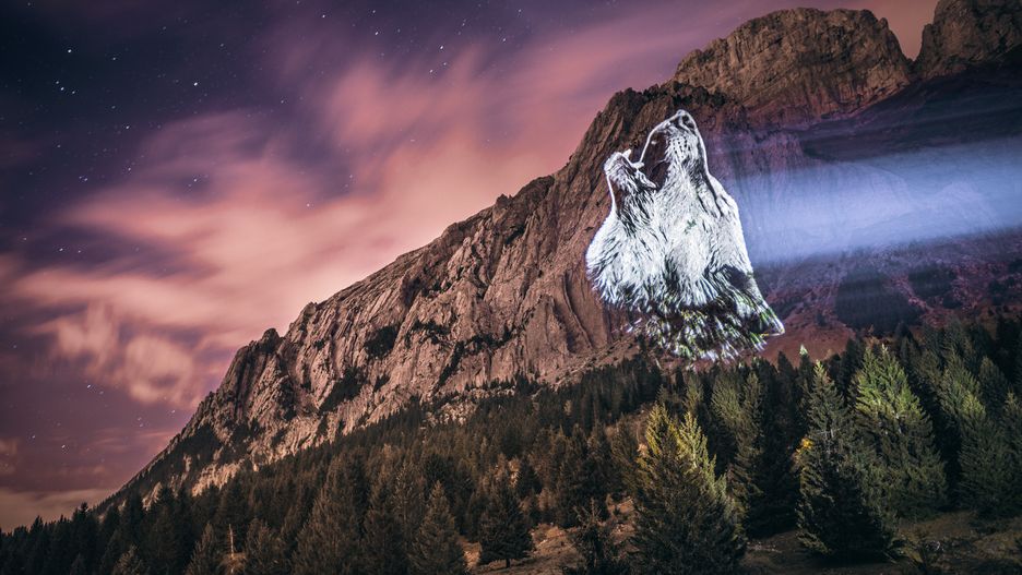 Julien Nonnon, artysta wizualny, wykorzystał silny projektor, żeby ożywić duchy zwierząt z gór, które odwiedził. "Crying Animals" to seria zdjęć, która zwraca uwagę na problem zagrożonych gatunków.